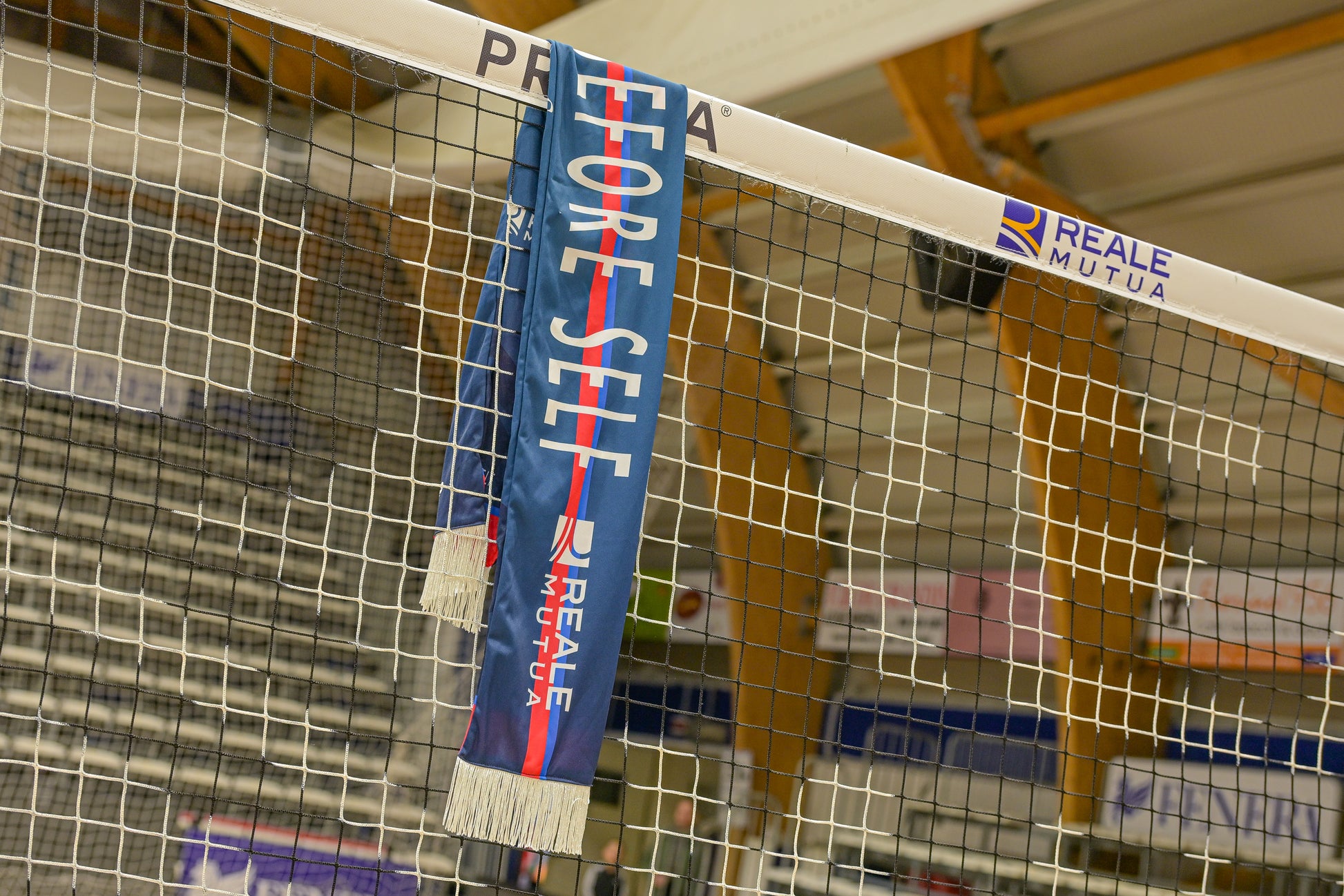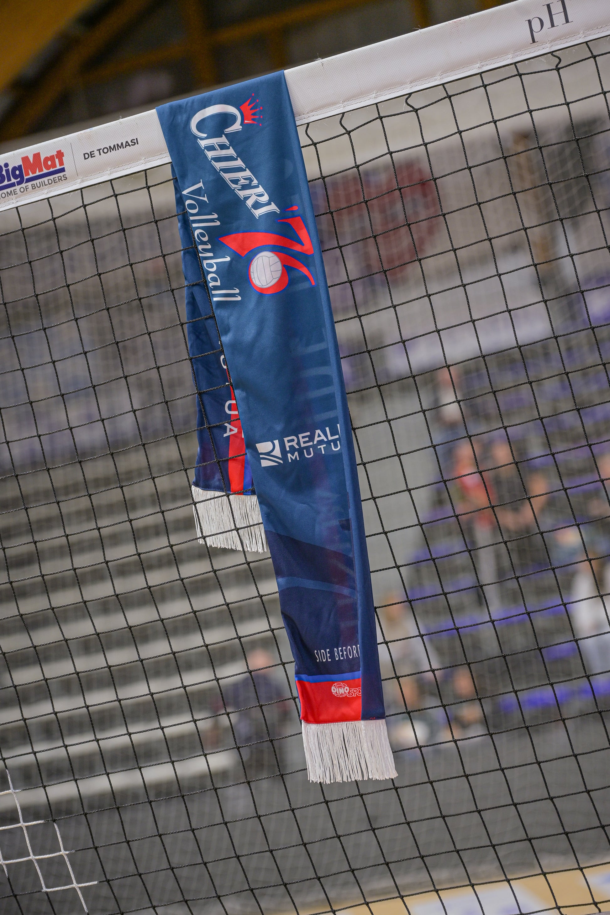 Con frange bianche e un dominante colore blu petrolio, questa sciarpa è un indumento da indossare con orgoglio e un cimelio prezioso per i veri fan del Chieri Volleyball.